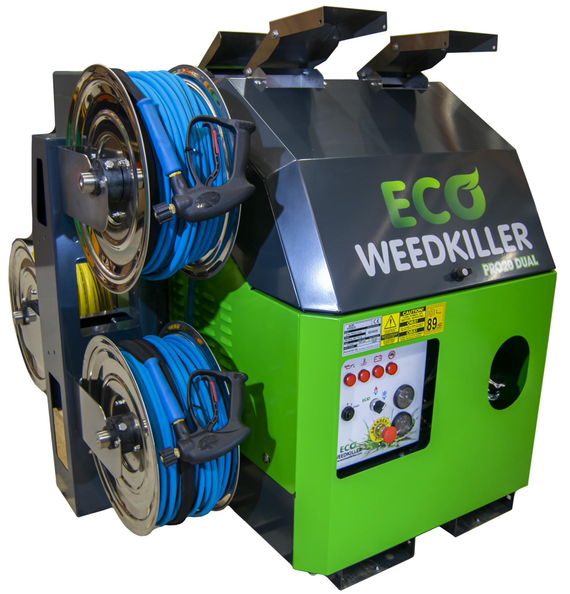 Hot water unit with a diesel engine and high-pressure pump. Equipped with two hoses for efficient and flexible operation.